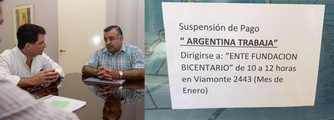 Según un cartel pegado frente a una dependencia oficial nacional, los beneficiarios serían obligados a concurrir a la Fundación del Bicentenario, que pertenecería a un concejal de José Cano.