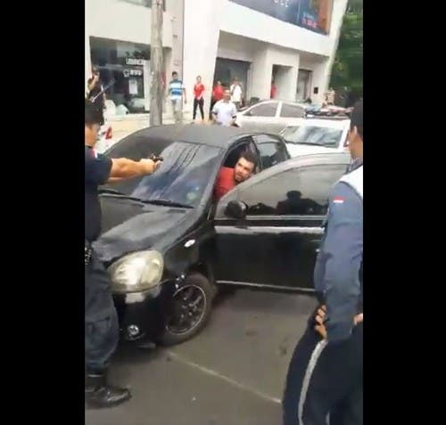 En Asunción del Paraguay, un automovilista identificado como Kalil Sosa, quien indebidamente giró su vehículo a la izquierda, fue perseguido por agentes municipales que le aplicaron una multa por la infracción.Un joven fue aprehendido por la Policía Nacional, tras huir y agredir a agentes de la PMT. El mismo posee varios antecedentes por hurto #970AM pic.twitter.com/u8bismmiOL