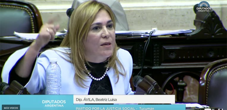 La diputada por Tucumán Beatriz Ávila (Cambiemos) cerca de las 1.30 se expresó en contra de la despenalización del aborto. Vestida con un saco celeste, del mismo color que rechaza el proyecto de ley, la tucumana afirmó que lo que se debatía esta madrugada no era una cuestión política, partidaria o ideológica. "Es una cuestión de conciencia. Estamos discutiendo una cuestión moral. Estamos discutiendo una cuestión de valores", dijo.