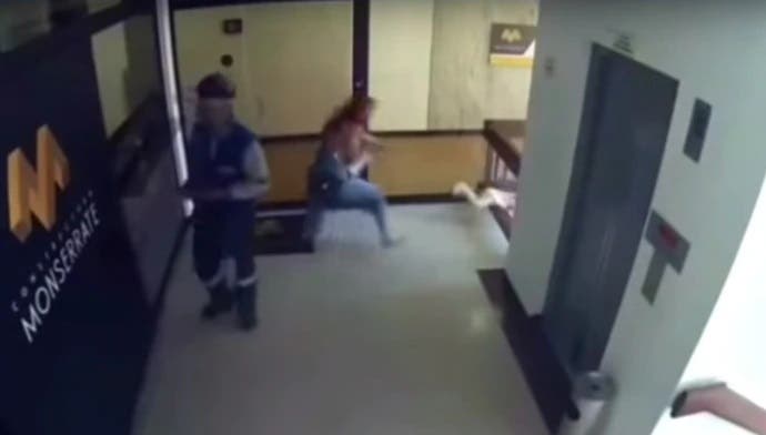 El clip, que ya tiene más de 4000 reproducciones en Facebook, muestra el preciso momento en que la mamá sale de un ascensor con su hijo de año y medio tomado de la mano. Segundos después, la mujer, quien está hablando por teléfono, lo suelta y el bebé se aproxima a la baranda de la escalera, se agacha y se queda observando al vacío en cuclillas hasta que pierde el equilibrio y trata de cogerse en la baranda, pero su cuerpo lo vence y lo impulsa al abismo.
