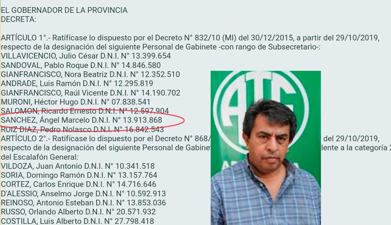 Sin embargo, ahora se conoció que Sánchez, además de mantener el cargo en la Legislatura, fue nombrado en 2015 como personal de gabinete en el Poder Ejecutivo, con rango de subsecretario de Estado, en el Ministerio del Interior. El nombramiento fue renovado en noviembre de 2019, hace cuatro meses, según consta en el Boletín Oficial de la Provincia.