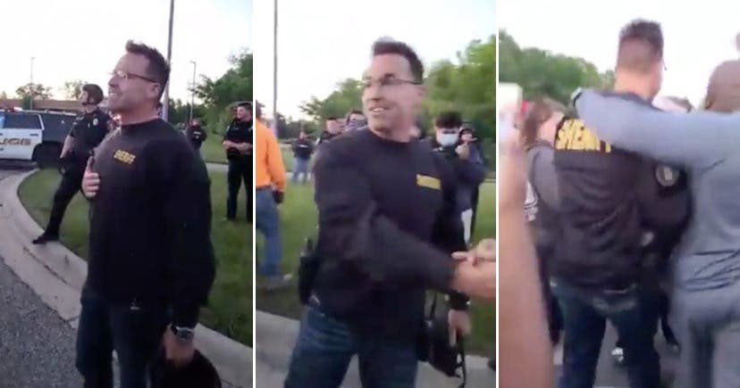 Un sheriff de Michigan se unió a los manifestantes en Flint Township el sábado, bajando su arma y diciendo: "Quiero hacer de esto un desfile, no una protesta".