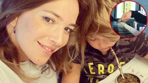 La actriz mostró cómo el pequeño de 6 años toca el piano igual que se papá.