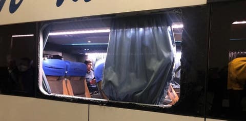 El micro de Boca fue agredido en Brasi (Foto: @alan_sche).
