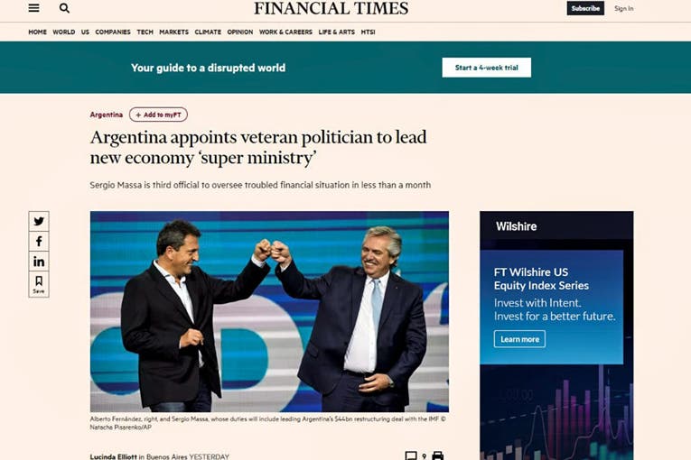 El prestigioso periódico británico Financial Times hizo hincapié en la “promesa” del nuevo ministro de Economía, Producción y Agricultura, Sergio Massa, de reestablecer el orden fiscal luego de que el flamante funcionario anunciara sus primeras medidas. La publicación especializada remarcó el cambio de tono, orientado a intentar recuperar credibilidad entre inversores y ciudadanos, aunque detalló las dificultades y desafíos que todavía quedan por superar.“En su primer discurso desde que fue nombrado la semana pasada, Massa, de 50 años, anunció una serie de medidas que incluyen la promesa de poner fin a la impresión de dinero para financiar el presupuesto -financiándolo en su lugar a través de la reducción del déficit o el endeudamiento del sector privado- junto con la creación de reservas de dólares y la revisión de los subsidios estatales con el fin de reducir el gran déficit del país”, resumió el artículo.