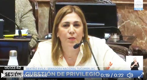 La senadora Beatriz Avila (Juntos por el Cambio) presentó en el recinto una cuestión de privilegio para plantear la grave situación sanitaria, a partir de la muerte de tres personas por causas desconocidas en el sanatorio Luz Médica, y pidió mayor información por parte del gobierno provincial y la intervención del Ministerio de Salud de la Nación.
