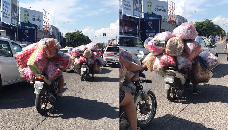 Este jueves, a las 16.30 horas, se observó a dos motos llevando decenas de almohadas, en la avenida Ejército del Norte y Belgrano.