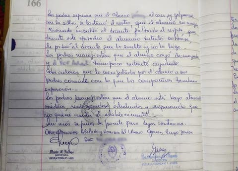 La familia del alumno se enteró un día después, momento en el que las autoridades de la institución citaron a los padres para conversar sobre lo que había sucedido.