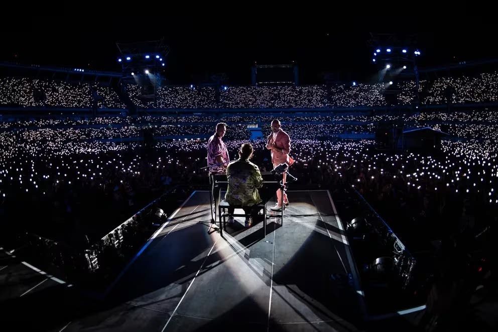 Unas 80 mil personas colmaron el estadio Más Monumental este viernes para ver una función inolvidable de Tan Biónica, que lidera Santiago Chano y Gonzalo Bambi Moreno Charpentier, el guitarrista Sebastián Seby Seoane y el baterista Diego Diega Lichtenstein.