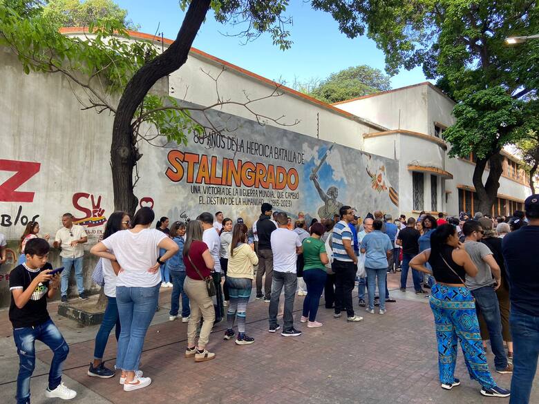 En la línea de la mesa 8, apoyado sobre una pared que recordaba los “80 años de la heroica batalla de Stalingrado” con una pintura, estaba José, de 54 años, que apenas llegaba de acompañar a su hermana a sufragar. “Solo espero que todo salga bien hoy. Yo tuve el problema de que me cambiaron el centro de votación, pero aquí estoy”, cuenta José, uno de los venezolanos que reportaron modificaciones en su mesa. En comparación con años anteriores, José asegura que “hay bastante gente”.