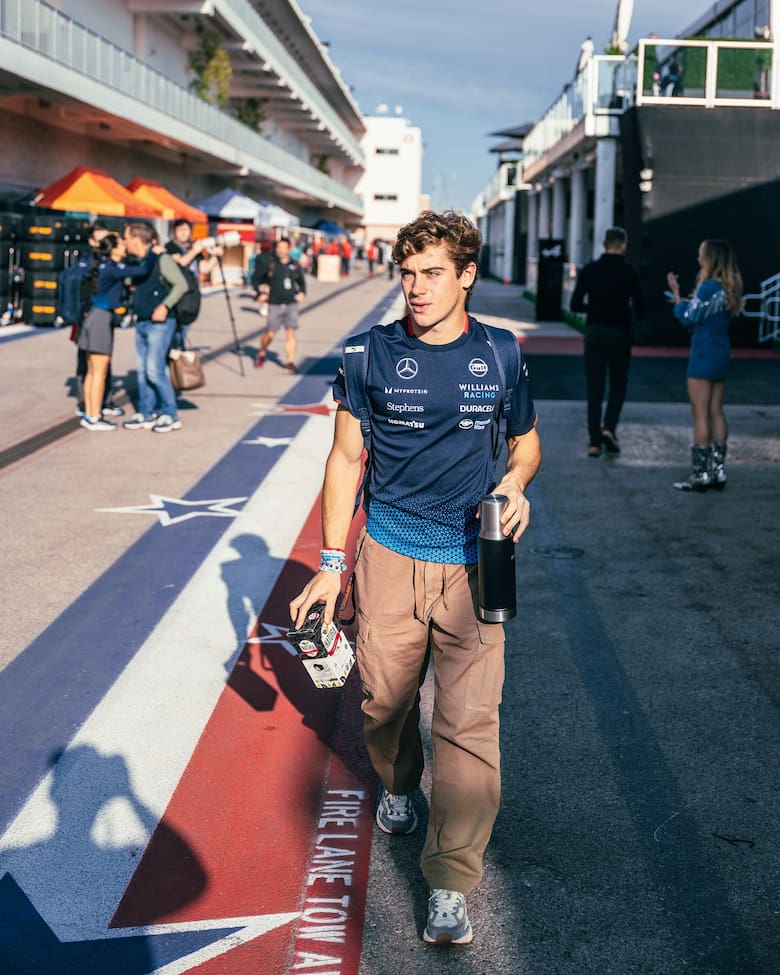 Franco Colapinto está listo para subirse a su Williams. Luego de pasar unos días en España, donde hizo un poco de shopping, fue a un casamiento y hasta estuvo de invitado en el conocido programa El hormiguero (Antena 3), se reunió con su equipo para continuar con su intenso entrenamiento físico para volver a la pista. Tras aterrizar en los Estados Unidos, dijo presente en el Fan Zone de su equipo en Austin, donde, además de la presentación de su merchandising oficial, charló con sus fans y hasta prometió intentar organizar un asado.