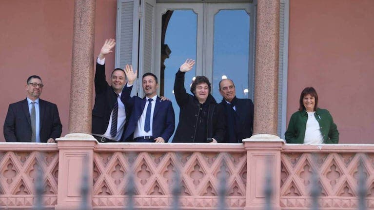 El Presidente salió a saludar junto a parte del gabinete, entre ellos el vocero Manuel Adorni, el jefe de Gabinete, Guillermo Francos, la ministra de Seguridad, Patricia Bullrich, y su pares de Capital Humano, Sandra Pettovello, y de Defensa, Luis Petri, entre otros funcionarios. Saludaron y rápidamente recibieron las críticas de los manifestantes en Plaza de Mayo.