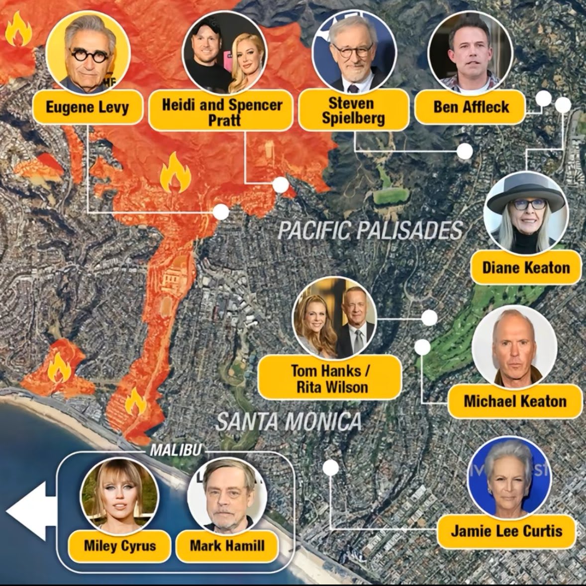 Muchas figuras de Hollywood fueron víctimas de los incendios que aún azotan a California