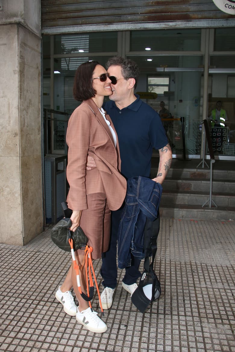 los enamorados no dudaron en compartir besos y gestos de cariño frente al público, aunque permanecieron con sus lentes de sol para mantener un ápice de privacidad, un halo de misterio.El flamante novio -que en 2010 se había casado con la actriz Julieta Cardinali, con quien tuvo a su única hija, Charo- lució una remera azul de cuello abotonado, pantalón de jean y zapatillas blancas, mientras que su mujer llevó un conjunto de blazer y bermuda marrón con una remera blanca, también de cuello abotonado.