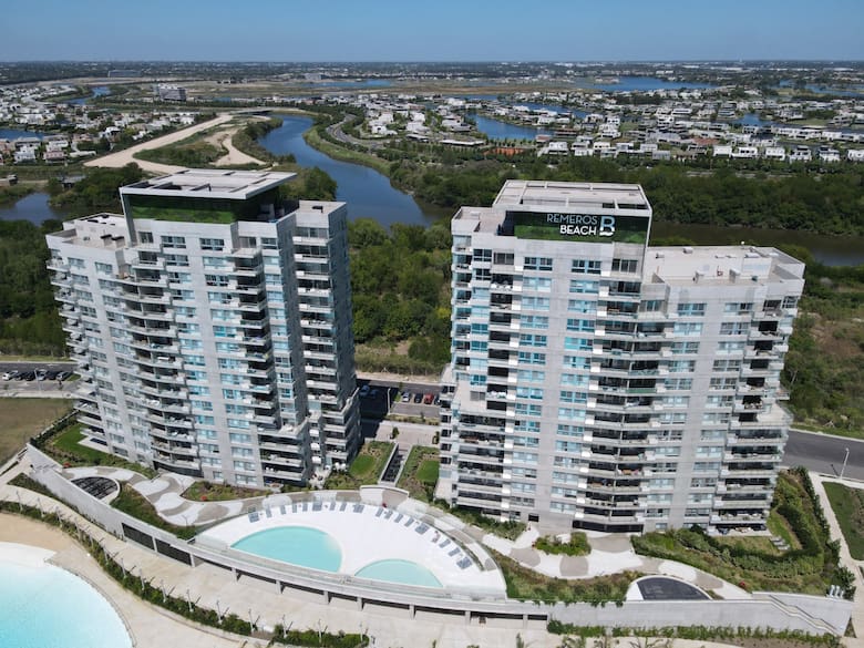 Se trata de los edificios Sky One y Sky Two, ubicados en el complejo Remeros Beach, un desarrollo inmobiliario con una laguna artificial y amenities premium, que arrancó con su planeamiento en 2015 e implicó una inversión de US$200 millones entre edificios y terrenos. Actualmente, los precios de las unidades están valuadas alrededor de los US$4000 el metro cuadrado.