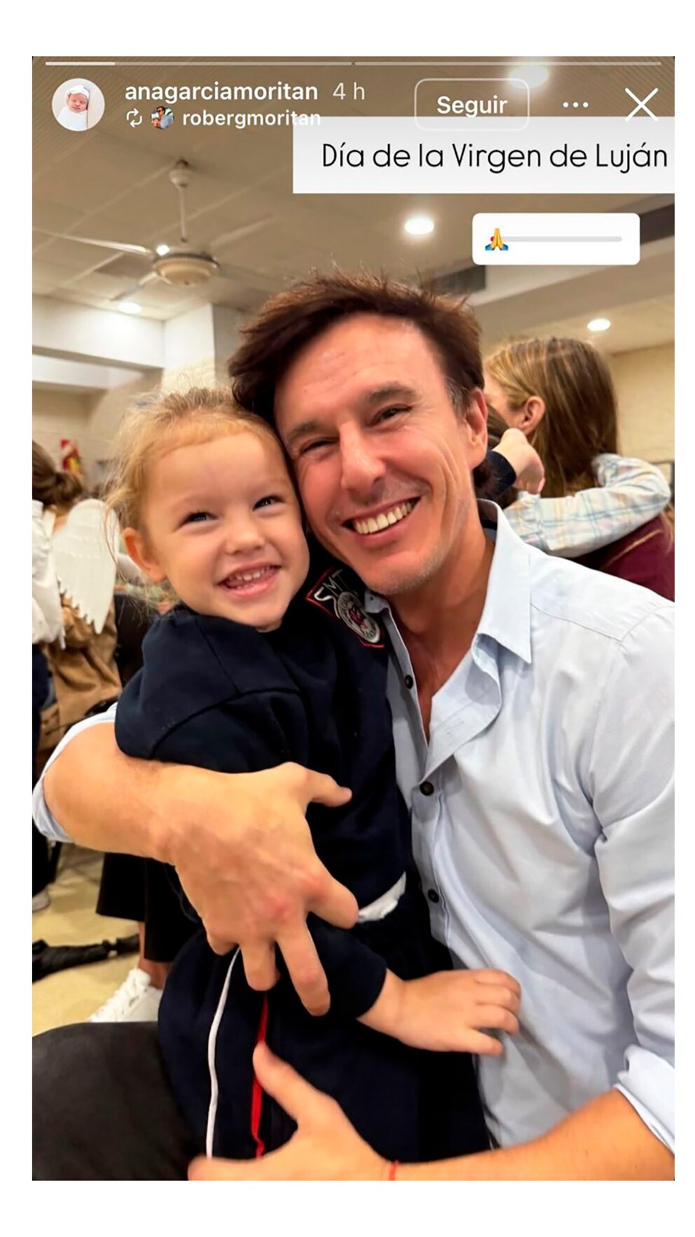 Todo se dio en un contexto escolar cuando la menor celebraba, junto a sus compañeros, el Día de la Virgen de Luján. La conductora y el político mostraron el detrás de escena de esta situación a través de las redes sociales de Anita. En las stories, la modelo (que administra la cuenta de su hija) publicó primero la foto de su hija junto a su padre. En la publicación podía verse a Moritán sonriendo mientras abrazaba a la menor.