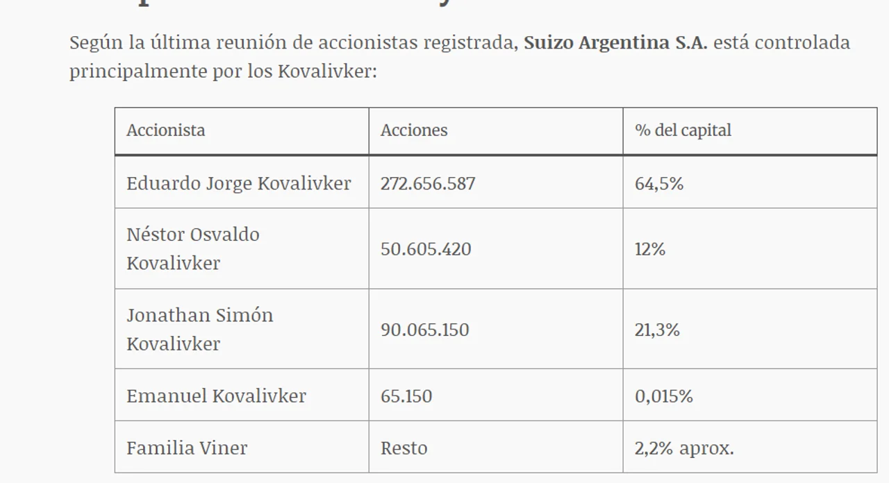 Cuando los hermanos se retiraron de la dirección de la empresa, dejaron sus destinos en la generación siguiente, más precisamente en el hijo mayor de Eduardo, Jonathan Kovalivker, que tiene el 12% del paquete accionario, idéntico al porcentaje de su tío Néstor Osvaldo y de una familia asociada: Viner.