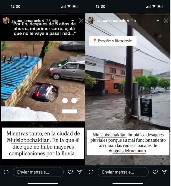 Esta vez, Caponio apuntó contra el funcionario de Rossana Chahla por la basura que recorrió las calles arrastrada por la correntada de agua acumulada. "Lobo Chaklián limpiá los desagües pluviales porque su mal funcionamiento arruina las redes cloacales de la SAT", cuestionó el titular de la empresa estatal, con una imagen de la acumulación de agua y de residuos en Villa 9 de Julio, más precisamente en la esquina de España y Rivadavia.
