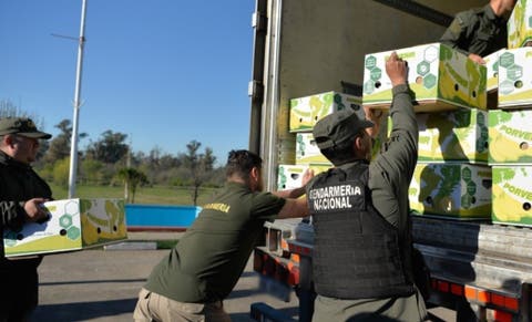 El camión donde inicialmente viajó camuflada la droga, en tanto, fue interceptado en la avenida Jorge Newbery y la Autopista Ezeiza-Cañuelas, cuando proseguía su viaje hacia el Mercado Central con el cargamento de bananas.
