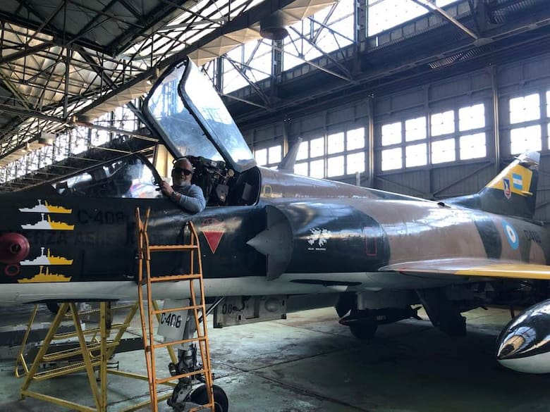 El colombiano Iván Sherman en el museo de la Base Aérea de Tandil, días antes de volar a Viedma junto a Espert y Machado. Fanático de los aviones de combate y de la guerra de Malvinas, subió a un IAI M5 DAGGER