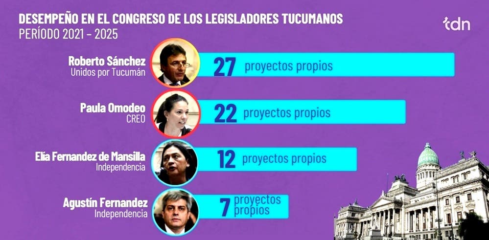 El repaso de la actividad legislativa de los parlamentarios tucumanos muestra un desempeño dispar en cuanto a la cantidad y el tipo de proyectos presentados durante el período comprendido entre diciembre de 2021 y septiembre de 2025, que es el ciclo en el que Tendencia de Noticias evaluó su trabajo en el Congreso.