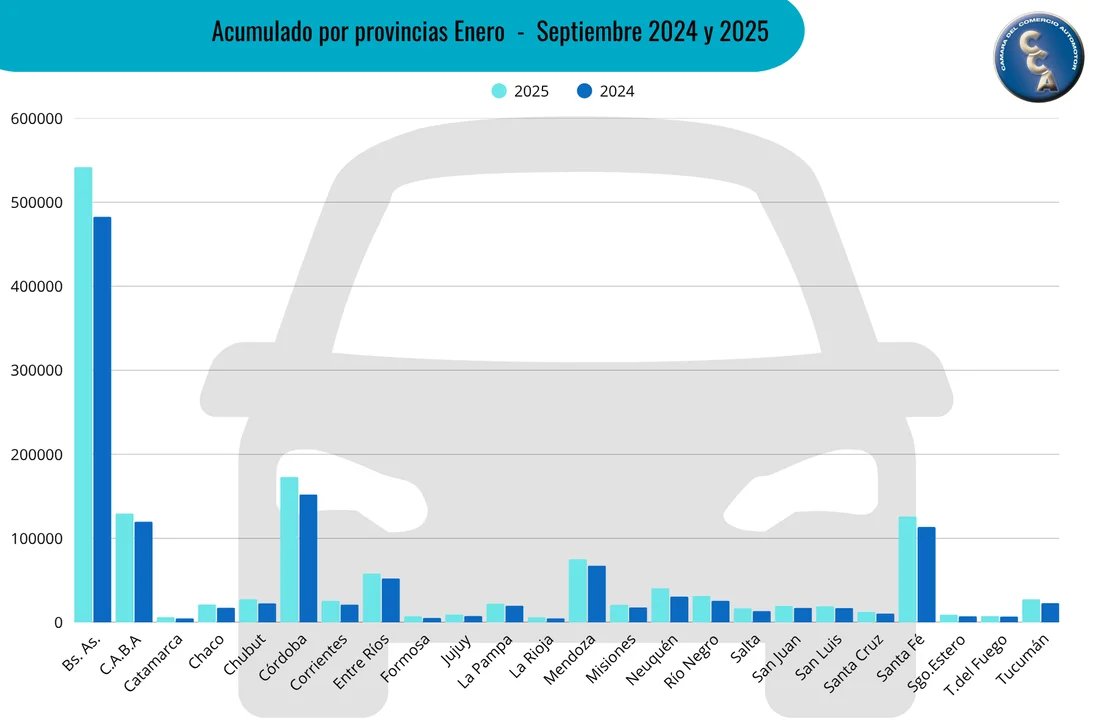 Desde que comenzó el 2025, se comercializaron 1.436.656 unidades. Este número significó un aumento del 13,84% contra el mismo período (enero-septiembre) del 2024 (1.262.016 unidades).