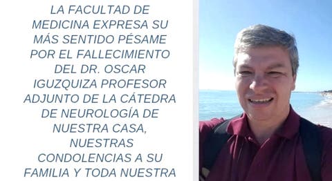 La Facultad de Medicina también emitió un mensaje en sus redes sociales: “Con profundo dolor, la Facultad de Medicina expresa su más sentido pésame por el fallecimiento del doctor Oscar Iguzquiza, profesor adjunto de la cátedra de Neurología de nuestra casa. Nuestras condolencias a su familia y toda nuestra solidaridad”.