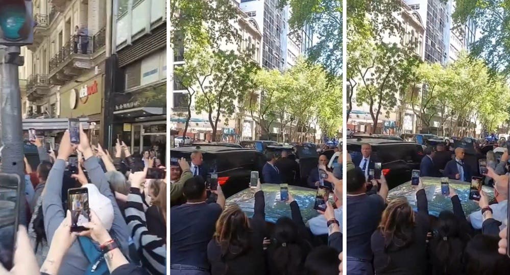 El hecho fue captado por celulares de los manifestantes reunidos en la puerta de un edificio ubicado a pocas cuadras de la Casa Rosada. En el video se ve a manifestantes insultar a Javier y Karina Milei y cantar el jingle "alta coimera", entre otros insultos.