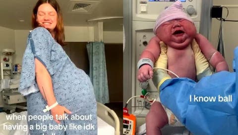 Shelby subió a TikTok una foto en la que se la ve con una panza enorme, minutos antes de dar a luz. “Cuando la gente habla de tener un bebé grande, como si yo no supiera lo que es”, escribió con humor. Pero la verdadera sorpresa llegó después: Cassian rompió el récord del hospital, convirtiéndose en el bebé más grande nacido allí en los últimos tres años.