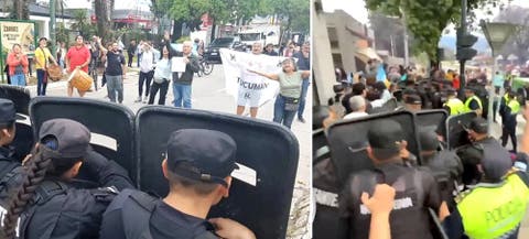 Tensión en Yerba Buena antes de la llegada de Milei: la Policía dispersó a manifestantes opositores y detuvo a un hombre