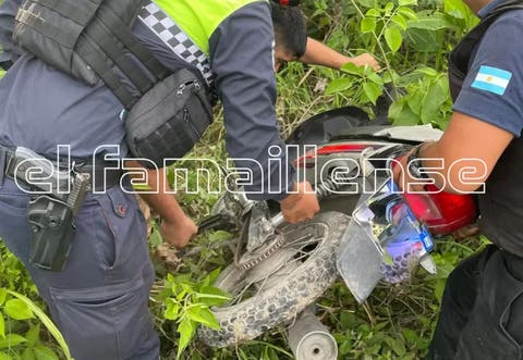 Gracias a la rápida intervención del personal policial, la motocicleta fue localizada poco después oculta entre matorrales en cercanías del barrio Elías Pérez, sobre calle Mariano Moreno.