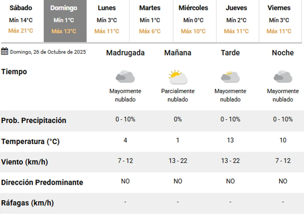 Las condiciones serán estables a lo largo del día, con momentos de parcial despeje por la mañana y cielo cubierto hacia la tarde y noche. En síntesis, un clima templado y sin sobresaltos, ideal para que los tucumanos concurran a las urnas con total normalidad.