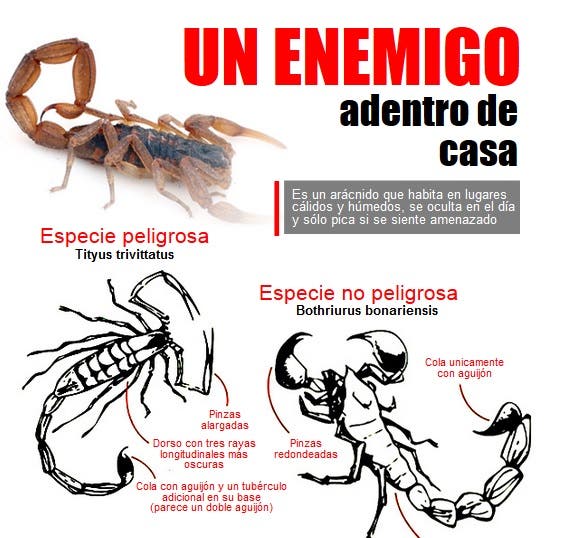 Los alacranes salen de sus refugios (debajo de piedras, escombros, grietas o basuras) para buscar alimento o pareja.