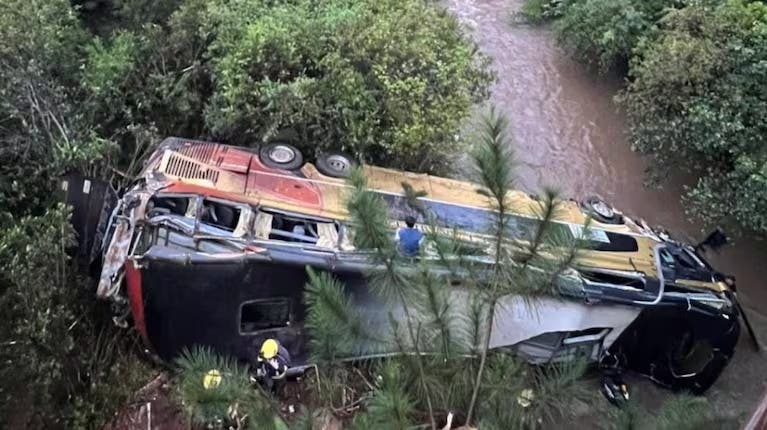 El hecho ocurrió sobre la ruta nacional 14. El colectivo, en el que viajaban 50 pasajeros, impactó con un auto y cayó desde varios metros de altura.