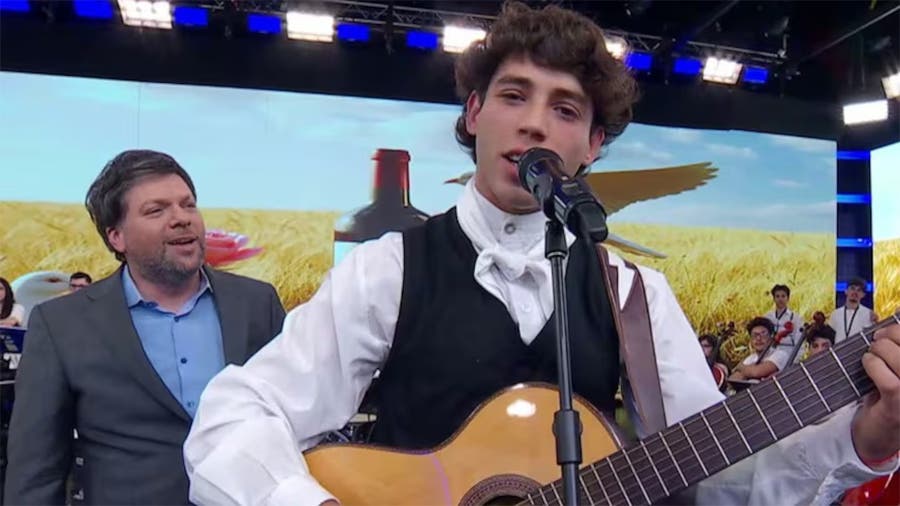 Braian Simaldoni recitó a Facundo Cabral, enamoró a las familias y Guido no pudo evitar acompañarlo.