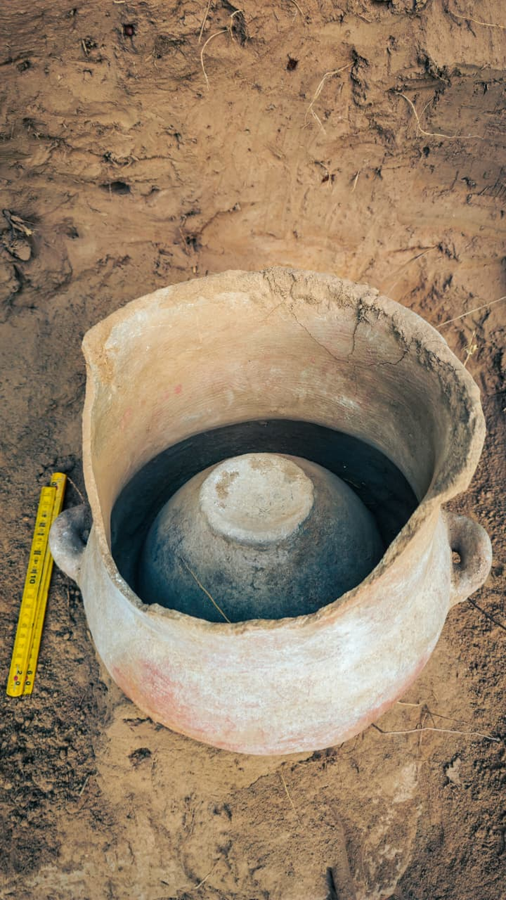 Lo más llamativo del hallazgo fue la presencia de un puco de cerámica colocado boca abajo dentro de la urna, una práctica funeraria que los especialistas interpretan como un símbolo de resguardo y protección espiritual para el infante.