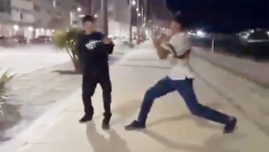 muestran a dos adolescentes enfrentándose cuerpo a cuerpo mientras un grupo de chicos los rodeaba, filmaba y gritaba. En medio del forcejeo, uno de ellos sacó un cuchillo y apuñaló al otro en la ingle. El arma cayó al piso, pero un testigo la levantó y se la devolvió al agresor.