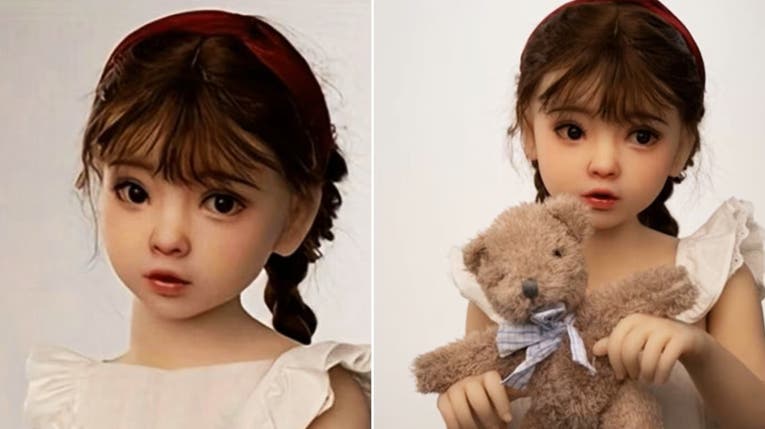 Las imágenes mostraban muñecas de 80 cm con rostros y cuerpos que imitaban a nenas, incluso con detalles como osos de peluche en los brazos.