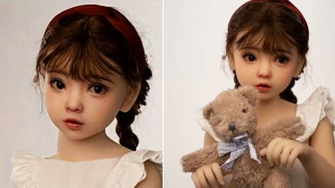 Las imágenes mostraban muñecas de 80 cm con rostros y cuerpos que imitaban a nenas, incluso con detalles como osos de peluche en los brazos.
