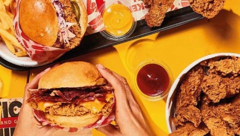 El menú incluye una variedad de sándwiches de pollo crujiente 100% pechuga, combinados con clásicos como cheddar, tomate y lechuga, hasta versiones con pepinillos encurtidos.