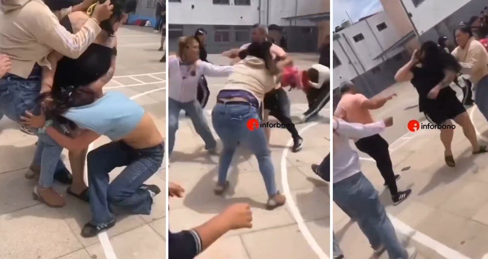 En cuestión de segundos, una mujer —según testigos, la madre de una de las alumnas— empieza a forcejear con otra, lo que desata una batalla campal.