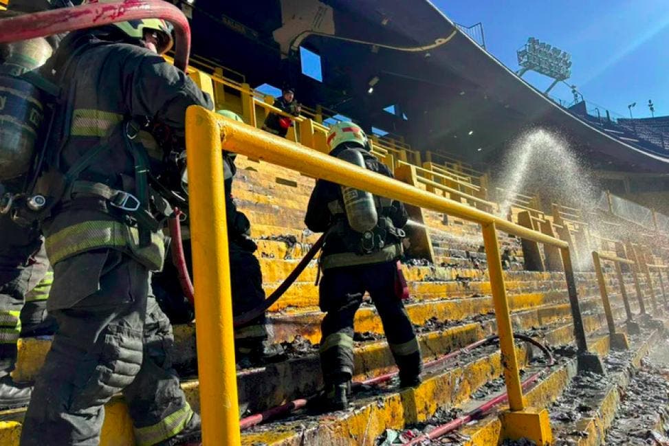 Los bomberos actuaron en el lugar del incendio y también trabajaron a distancia con mangueras desde una de las torres del estadio. No se reportaron heridos y la situación no supone peligro.