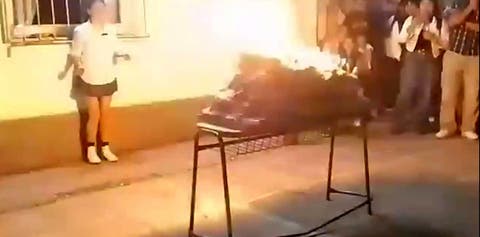 El fuego trepó por el hilo de alcohol, tomó la botella de plástico y explotó. /