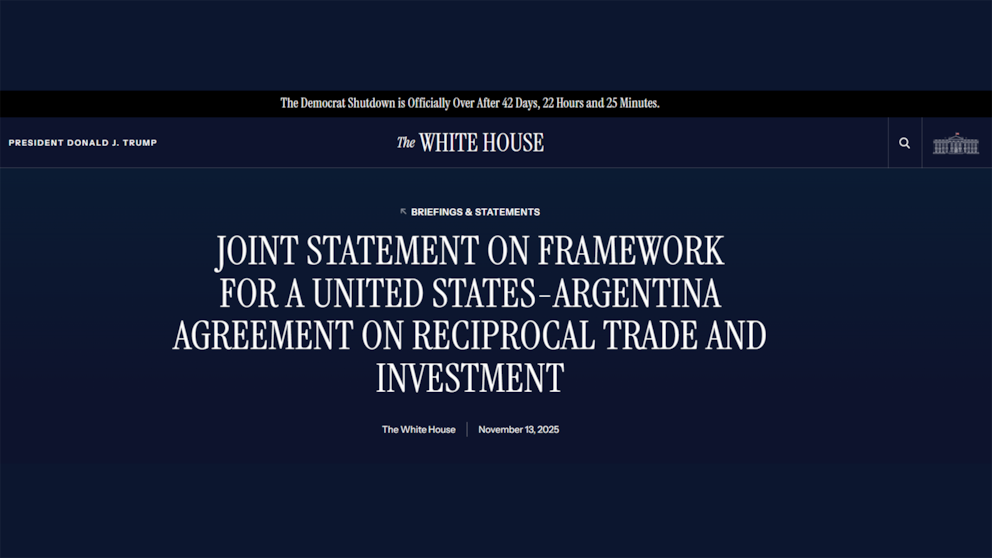 El gobierno de Estados Unidos comunicó este jueves un acuerdo marco comercial y de inversiones con la Argentina.