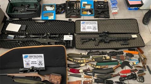 a las cuatro personas identificadas y detenidas se las requisó y le fueron incautadas nueve armas de fuego y siete armas blancas. En cuanto a las de fuego, se trata de una carabina Ruger calibre 9 milímetros, un fusil de repetición Sabatti ST-18 calibre .308, una carabina CZ calibre .22, un subfusil Walter MP5 calibre .22, dos pistolas semiautomáticas CZ 9 milímetros, una pistola Ruger del mismo calibre, una pistola Ballester Molina calibre .22 y un revólver calibre .32 largo sin documentación respaldatoria. Las armas blancas corresponden más bien a facas y cuchillos de caza.