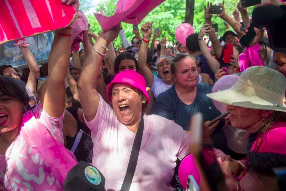 Las rejas que rodean el Centro de Estudios Judiciales de esta ciudad se fueron llenando de cintas, globos y pañuelos rosas, el color favorito de Cecilia