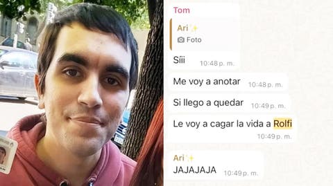 “Le voy a cagar la vida a Rolfi”. Ese es uno de los mensajes que se conoció tras la muerte de Matías Rolfi, el estudiante de la UBA de 27 años que se quitó la vida, y que confirma las sospechas de que era víctima de bullying.Ese mensaje lo envió por WhatsApp un hombre identificado como Tom. Según indicó a TN Rocío Rolfi -hermana de la víctima-, se trataría de un ayudante de cátedra de la materia Bromatología en la Facultad de Medicina, al igual que Ariana, la otra persona con la que conversaba en ese chat.