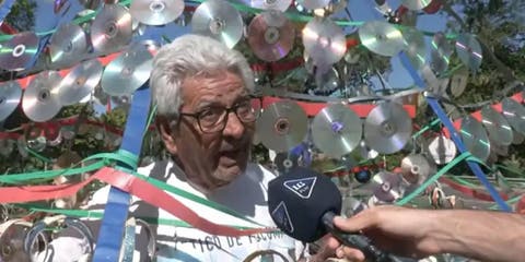 Sí, cuando uno viene por la ruta, de repente, queda atrapado por los destellos de cientos de CDs que cuelgan formando anillos brillantes, acompañados por pulseras plásticas que bailan con el viento. Es imposible no frenar, mirar, sacar una foto. Y Segundo, con la humildad de quienes hacen sin esperar aplausos, contó su historia.