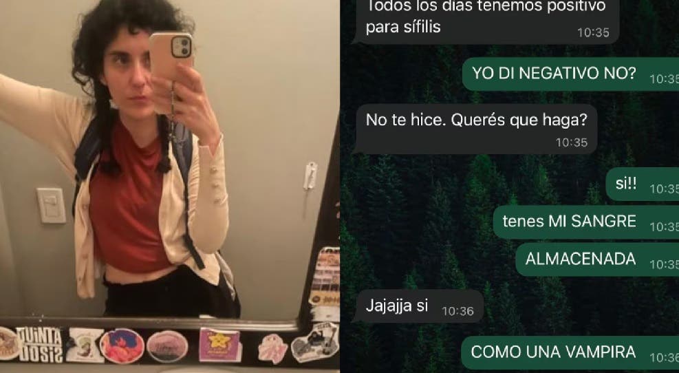 Todo empezó cuando la profesional le escribió: “Todos los días tenemos positivo para sífilis”. La destinataria, entre humor y preocupación, retrucó: “¿Yo di negativo, no?” Sin embargo, la respuesta la dejó perpleja: “No te hice. ¿Querés que te haga?”La joven siguió el juego sin dudar: “¡Sí! ¿Tenés mi sangre almacenada?” A lo que su amiga contestó entre risas: “Jajaja sí”. La conversación alcanzó su pico de absurdo cuando la protagonista lanzó: “Como una vampira”. Y la bioquímica cerró con una frase explosiva: “Te iba a decir eso. Estás al lado de Cata en el freezer”.