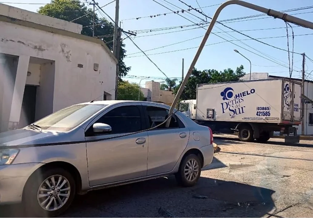 En la mañana del martes, en la intersección de Francia y 9 de Julio de la ciudad de Concepción, un camión cortó un cable que cruzaba la calzada, provocando la caída de un poste de madera y otro metálico del alumbrado público; un motociclista fue alcanzado por el cable, perdió el control y debió ser asistido en el Hospital Regional. Uno de los postes se incrustó en un auto.